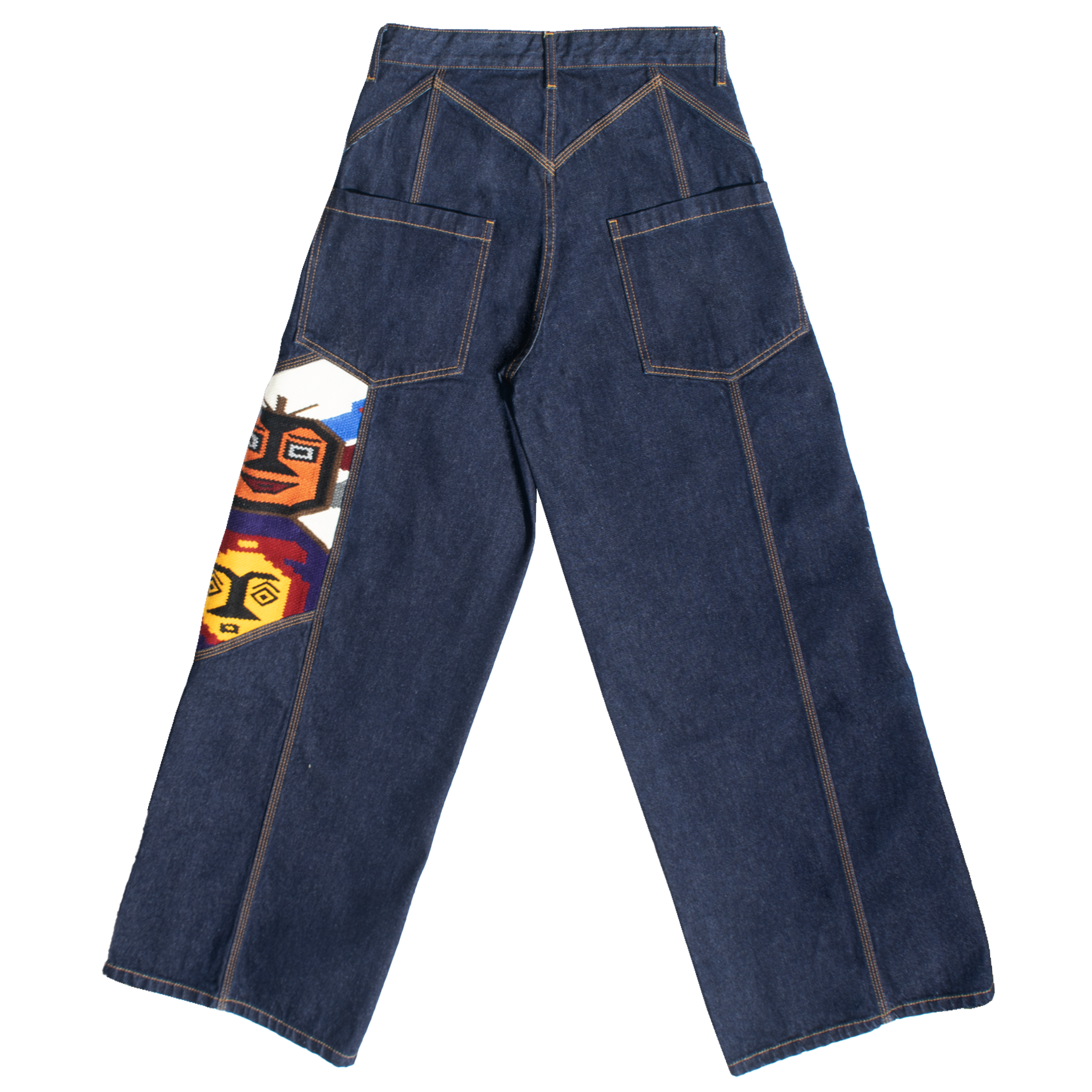 Oversize, unisex denim trousers. Dark wash. Danzante motif