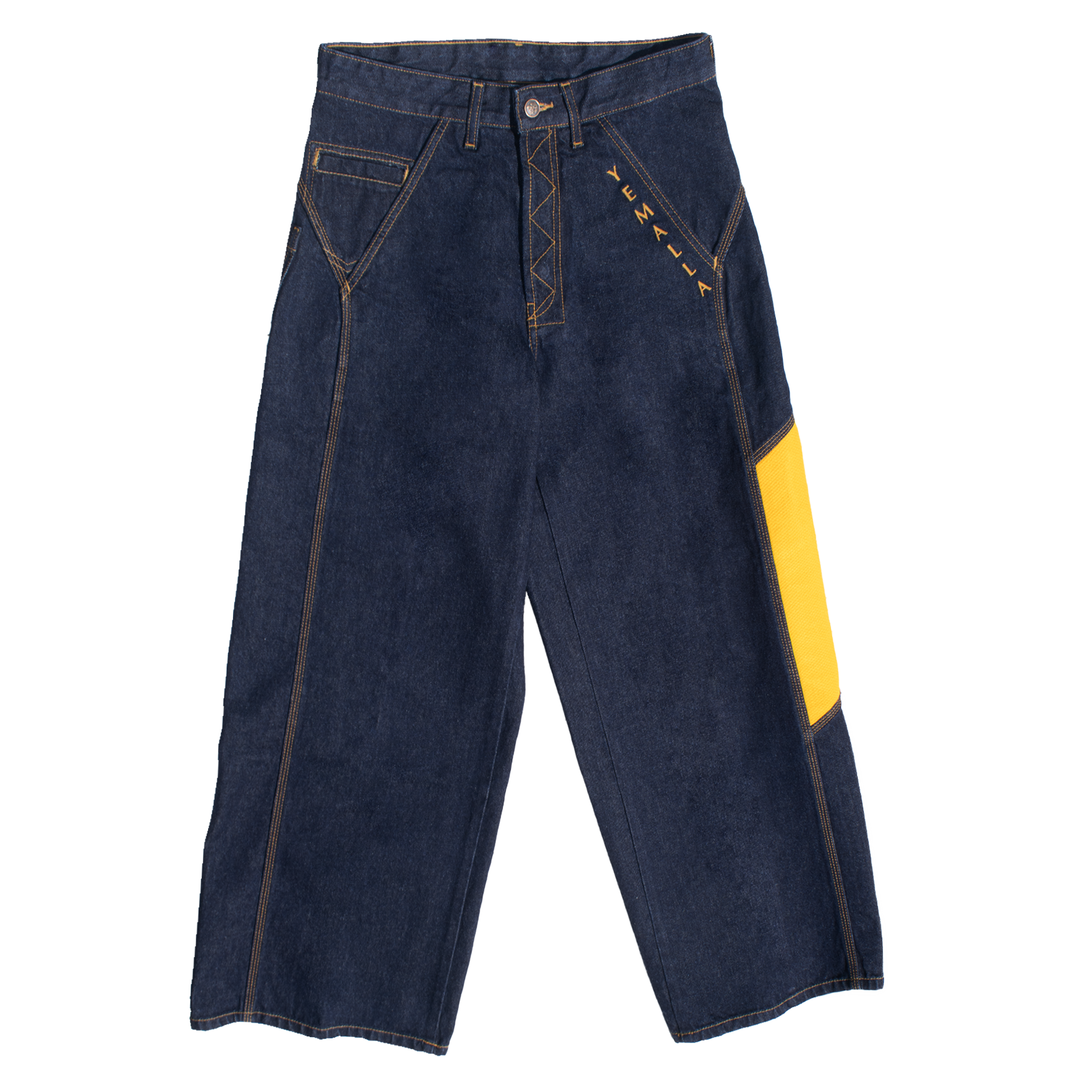 Oversize, unisex denim trousers. Dark wash. Amarillo motif.