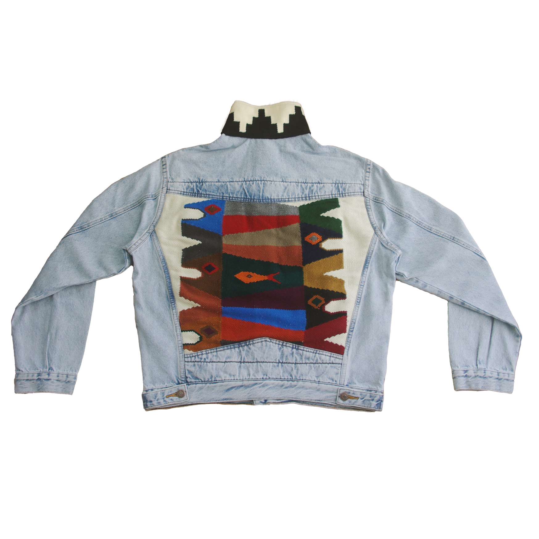 Blue denim, pescados cuadrado with white background handmade tapestry.